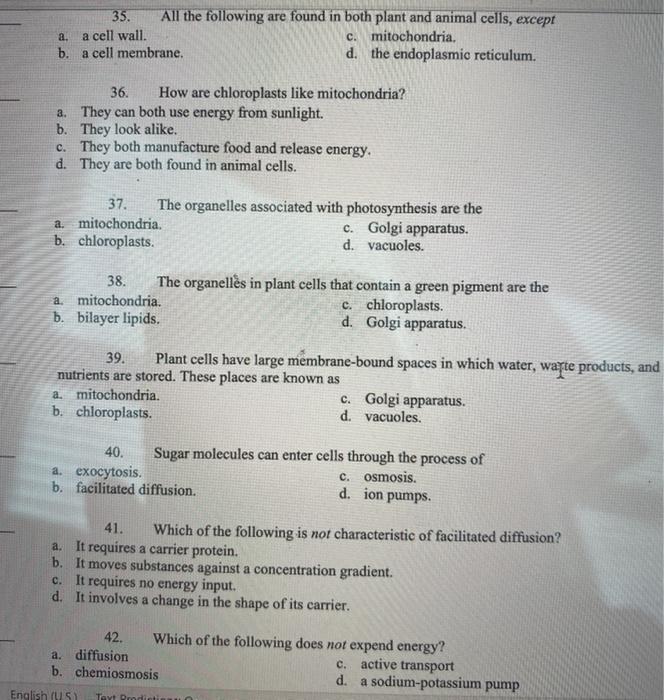 1 from Animal cells have mitochondria, a nucleus and golgi apparatus but they do not have chloroplasts. The democratic candidate for president in 1888 lost the election for all of the following reasons except Animal cells have all of the following except. Cells and systems unit 2 test student name class 1. Eukaryotic cells have membraneous cell organelles and well protected nuclear membrane hope it helps. Animal cells do not have chloroplasts, so answer choice (b) is the correct one. Which of the following is specialized to intestine cells to perform its function efficiently? Antiphagocytic factors produced by microorganisms include all of the following except a.
